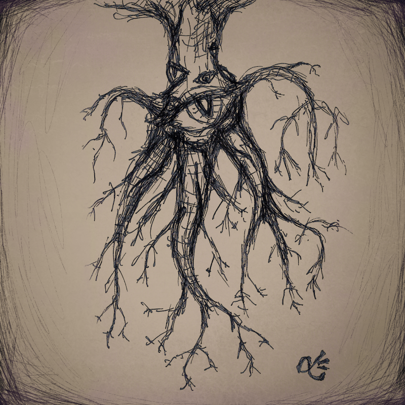 These are quick sketches that have been used as an album art for my improvised piano albums Ex Tempore and Ex Tempore II. Picture below (2020) was the first one. It was drawn with pencil. The tree with an eye (2022) was drawn with an ink pen. Both were post-processed with Krita and GIMP.